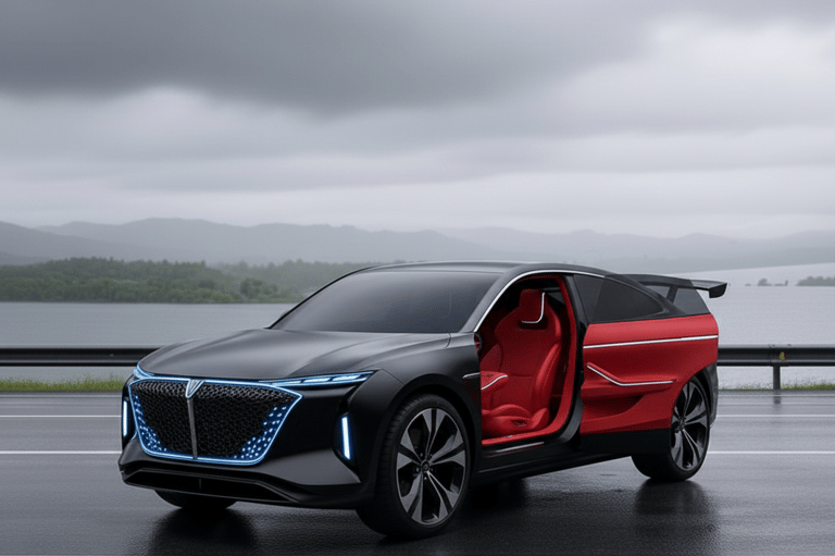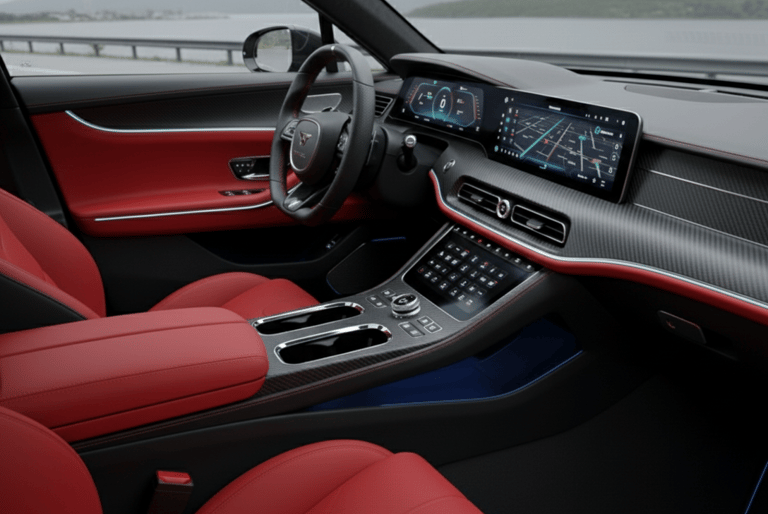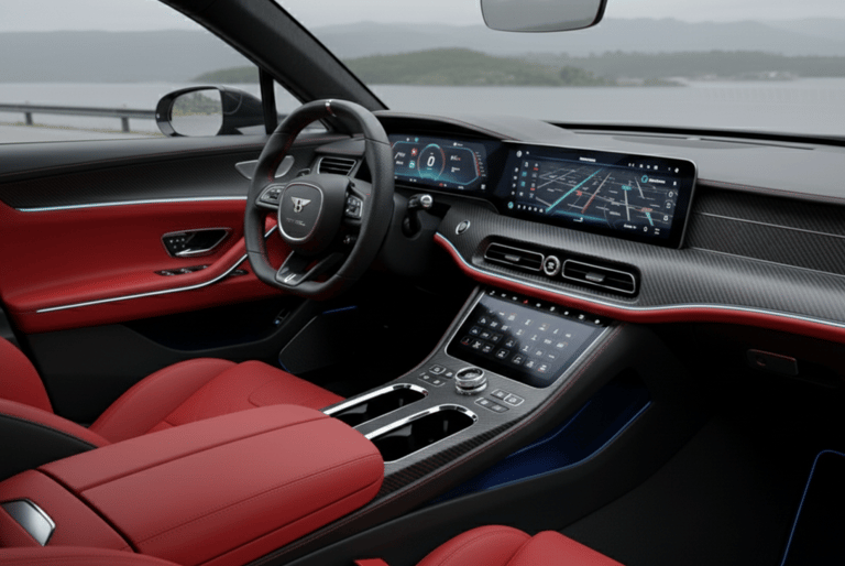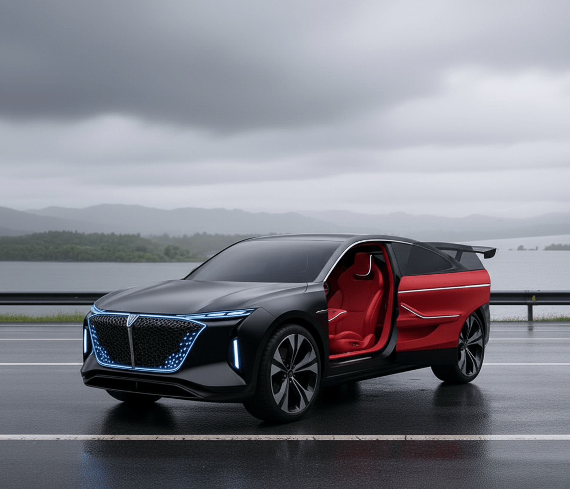 Suspensão Adaptativa Inteligente: Eletrônica multicâmara com altura variável e modos dinâmicos — capaz de absorver trilhas ou se firmar, sendo um supercarro em pista.