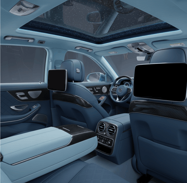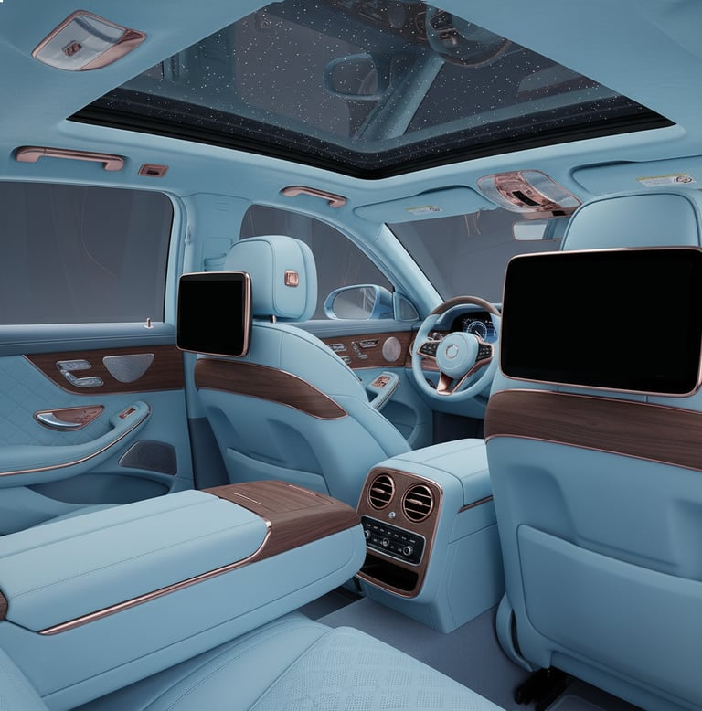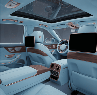 Sistema de som: Boulvié Resonance 4D com 52 alto-falantes invisíveis integrados à estrutura do carro.