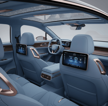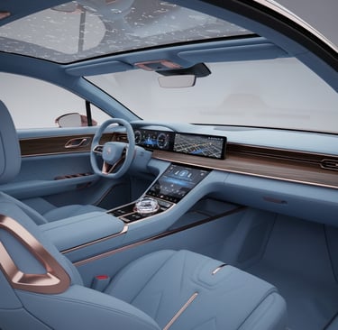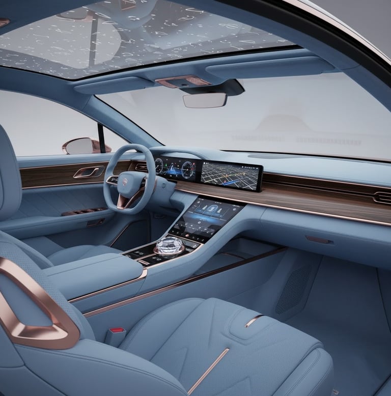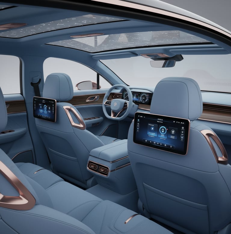 Sistema de aprendizado emocional: sensores biométricos e IA comportamental ajustam o interior conforme o humor do ocupante.