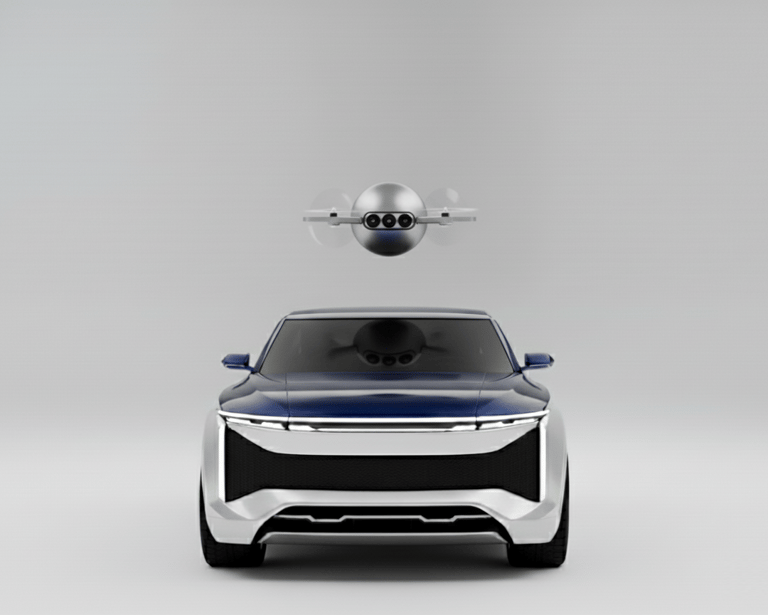 Quando o condutor decide soltar o volante, o Belaris reconhece o gesto — e o sistema de Autopilot IA Integrado assume o controle com suavidade absoluta. Nesse momento, o drone desce e se acopla novamente ao teto, conectando-se magneticamente ao sistema central. A fusão é invisível, mas perfeita: os dados coletados se transformam em visão preditiva, permitindo que o carro se conduza sozinho com percepção aérea em tempo real.