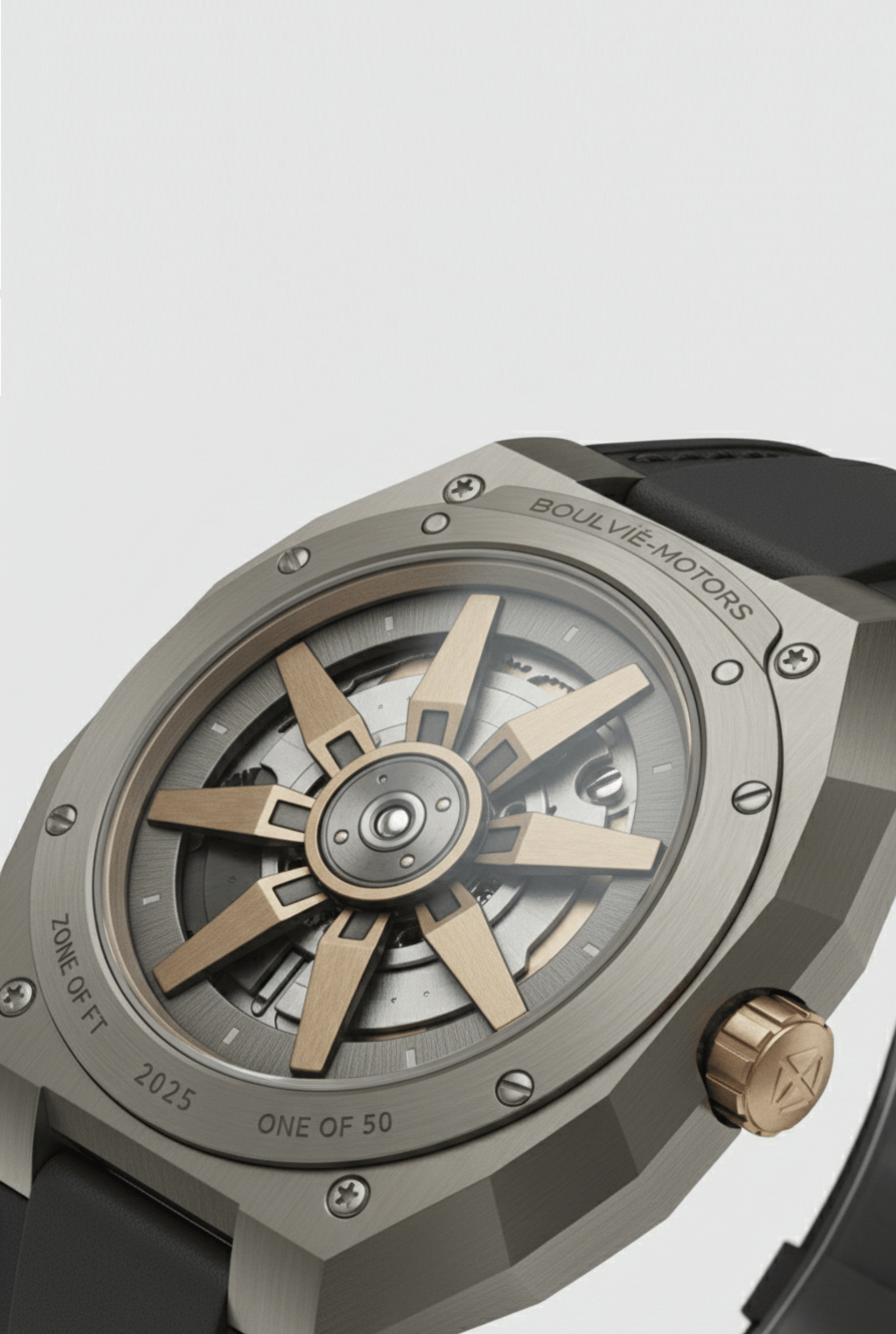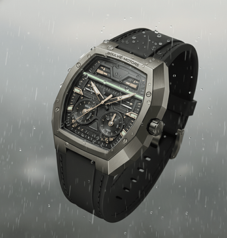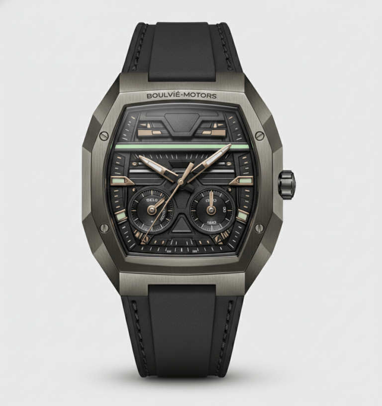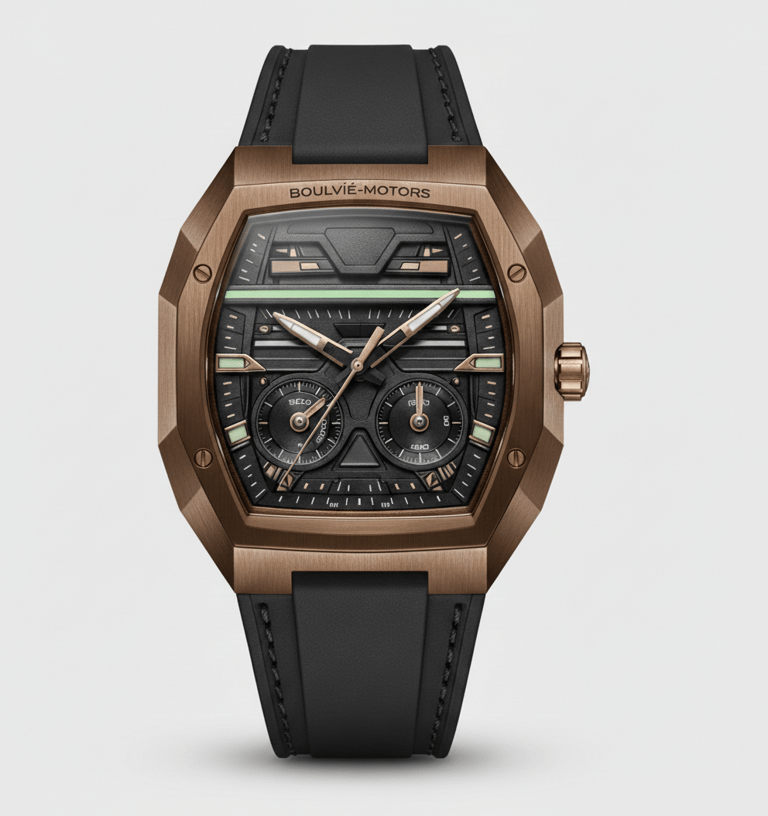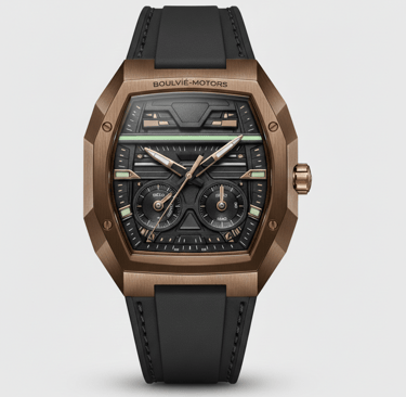 o instante em que a engenharia deixa de ser função e se torna legado. Criado sob a mesma filosofia que dá vida aos automóveis Boulvié, o Astrion Nº01 não nasce da relojoaria tradicional — nasce da arquitetura mecânica de alta performance, traduzida para o pulso.