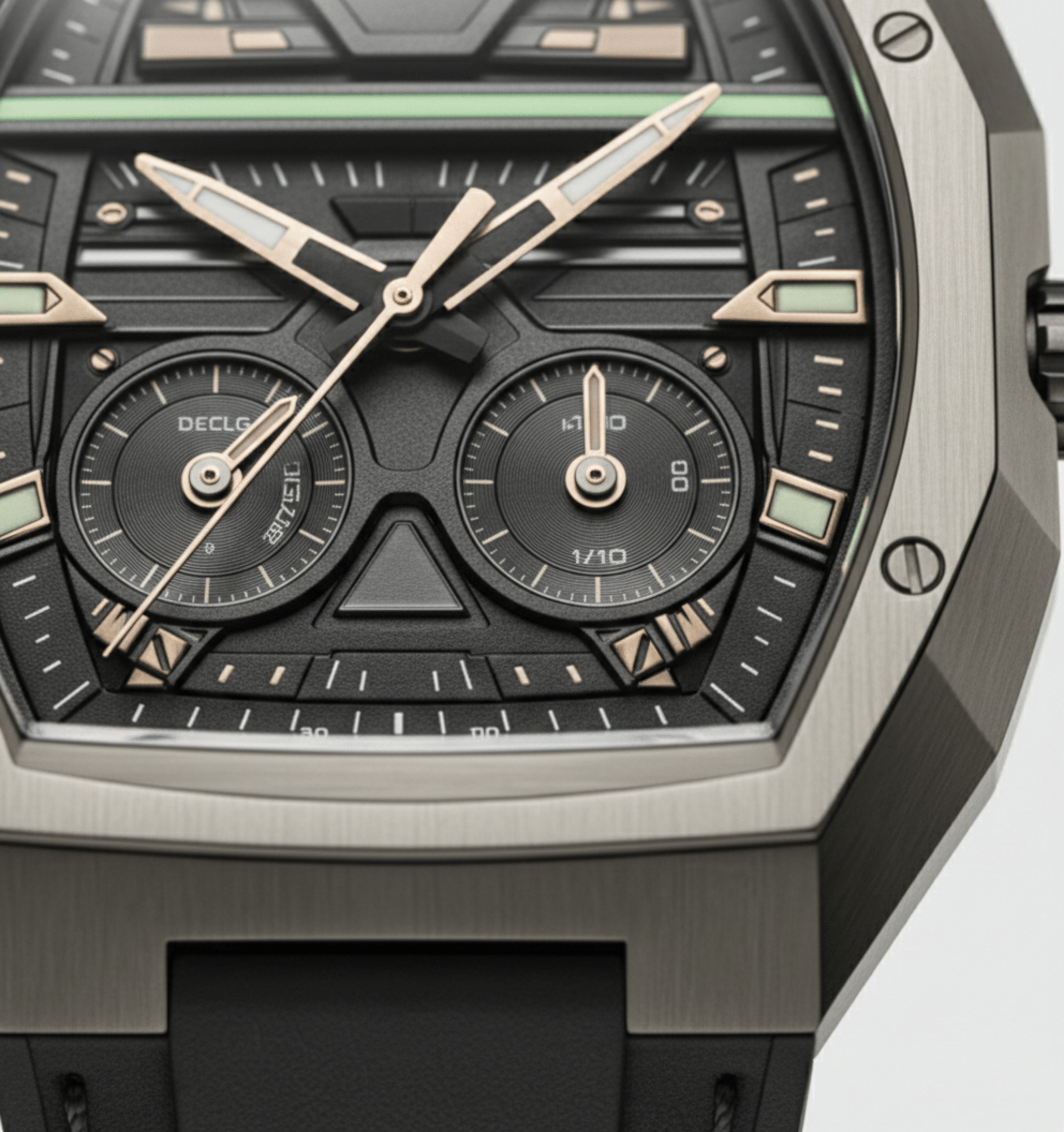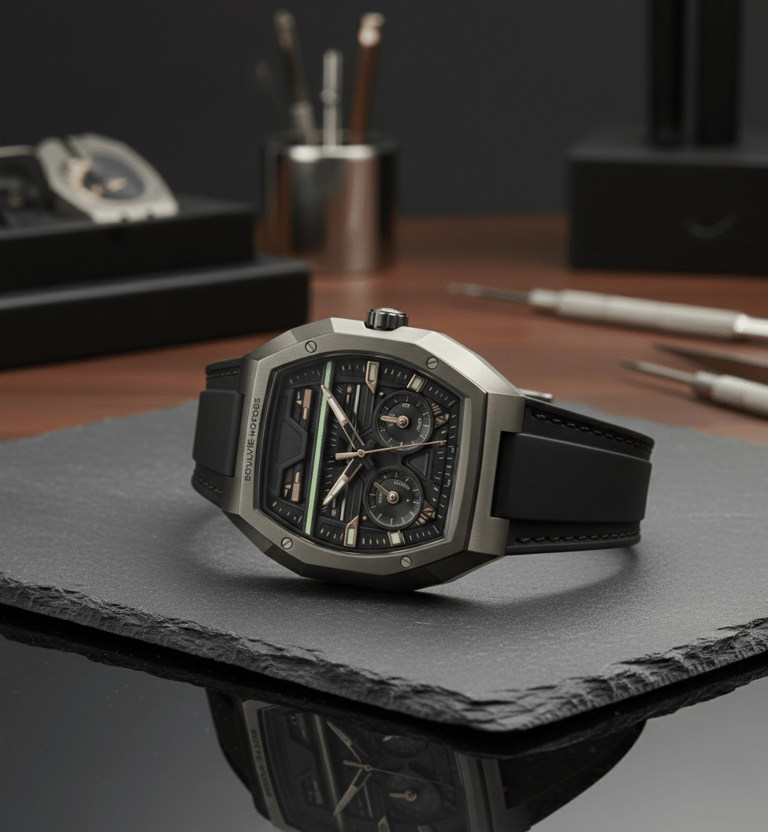 Um design que se aproxima da engenharia industrial, não da joalheria convencional.Elementos luminescentes de alta visibilidade