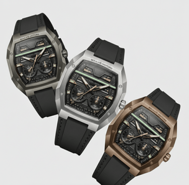 O Boulvié Astrion Nº01 é apresentado em três execuções distintas de caixa, cada uma revelando uma personalidade diferente da mesma arquitetura mecânica.