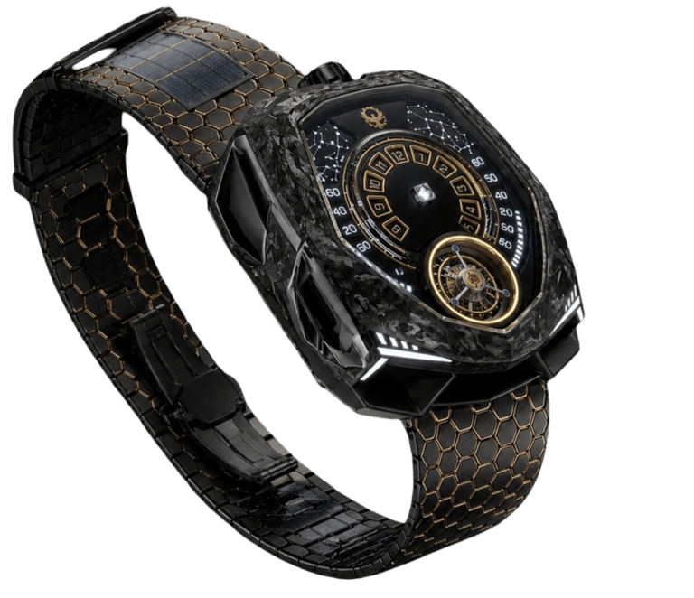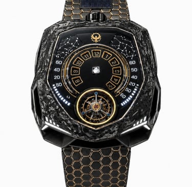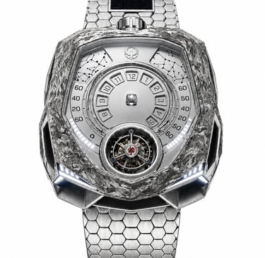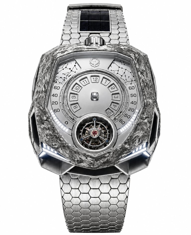 Linhas agressivas, arquitetura não convencional e um mostrador que abandona o óbvio para redefinir a leitura do tempo.